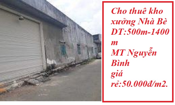 Cho thuê kho nhà bè dt: 250m2-500m2 -1000m2-5000m2 giá 50,000đ/m2